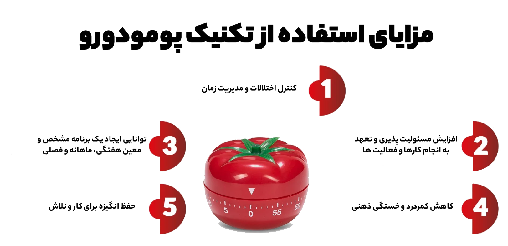 تکنیک پومودورو (Pomodoro) یکی از روش‌های مهم برای مدیریت زمان است که افراد برای برنامه‌ریزی کارهای خود، از آن استفاده می‌کنند. روش پومودورو بر این اصل تاکید دارد که وقتی افراد بین فواصل زمانی‌ای که با بیش‌ترین تمرکز کار می‌کنند، اندکی استراحت کنند، بهترین بهره‌وری را خواهند داشت.