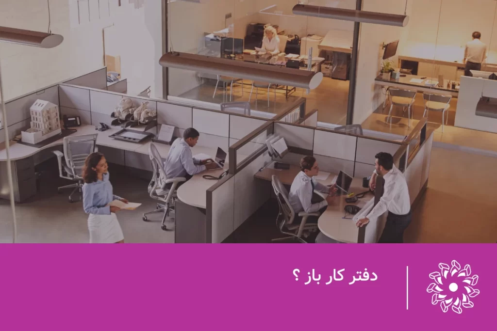 نقشه‌ی دفتر کار باز یا پلان اداری باز (Open Office Plan) سعی دارد با حذف دیوارهای فیزیکی و ایجاد محی...
